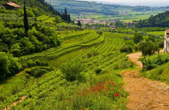 Het Gardameer en Verona: voor ons vakantiegebied, voor Monte del Frà werkgebied. Dit wijnbedrijf uit 1958, gevestigd in het dorp Custoza, bezit hier 140 hectare wijngaarden. De eigenaars, de familie Bonomo, hebben daarnaast nog wijngaarden in Valpolicella.