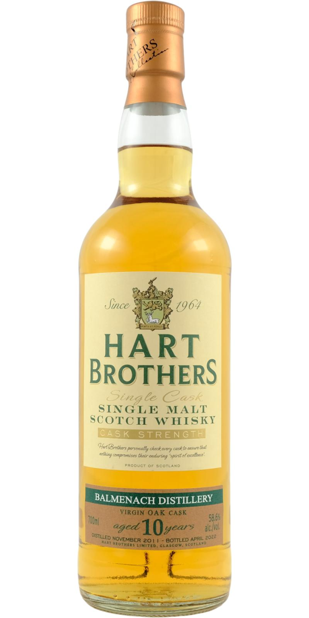 Deze Balmenach 10 Years is een expressieve single malt, geselecteerd en gebotteld door Hart Brothers, een gerenommeerde onafhankelijke bottelaar die bekendstaat om zijn compromisloze stijl. De whisky rijpte volledig op virgin oak vaten, oftewel nieuwe eiken vaten, wat zorgt voor een krachtige houtinvloed en een uitgesproken smaakprofiel.